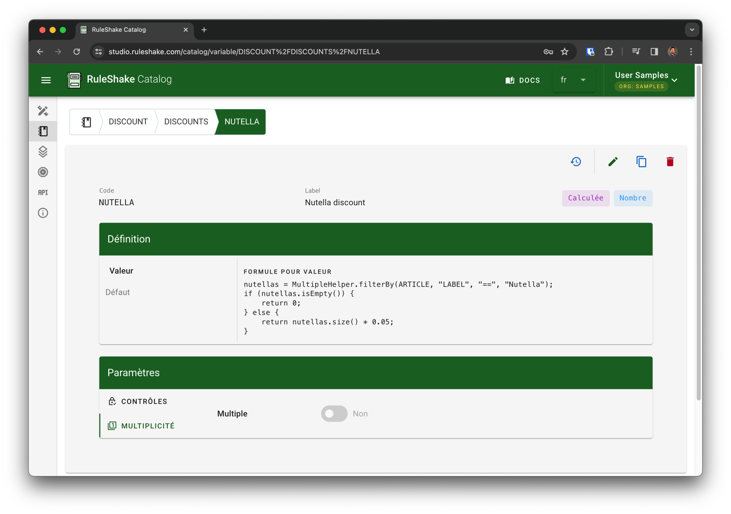 Pour les impatients, voici le lien vers cet exemple : https://demo.ruleshake.com/discount