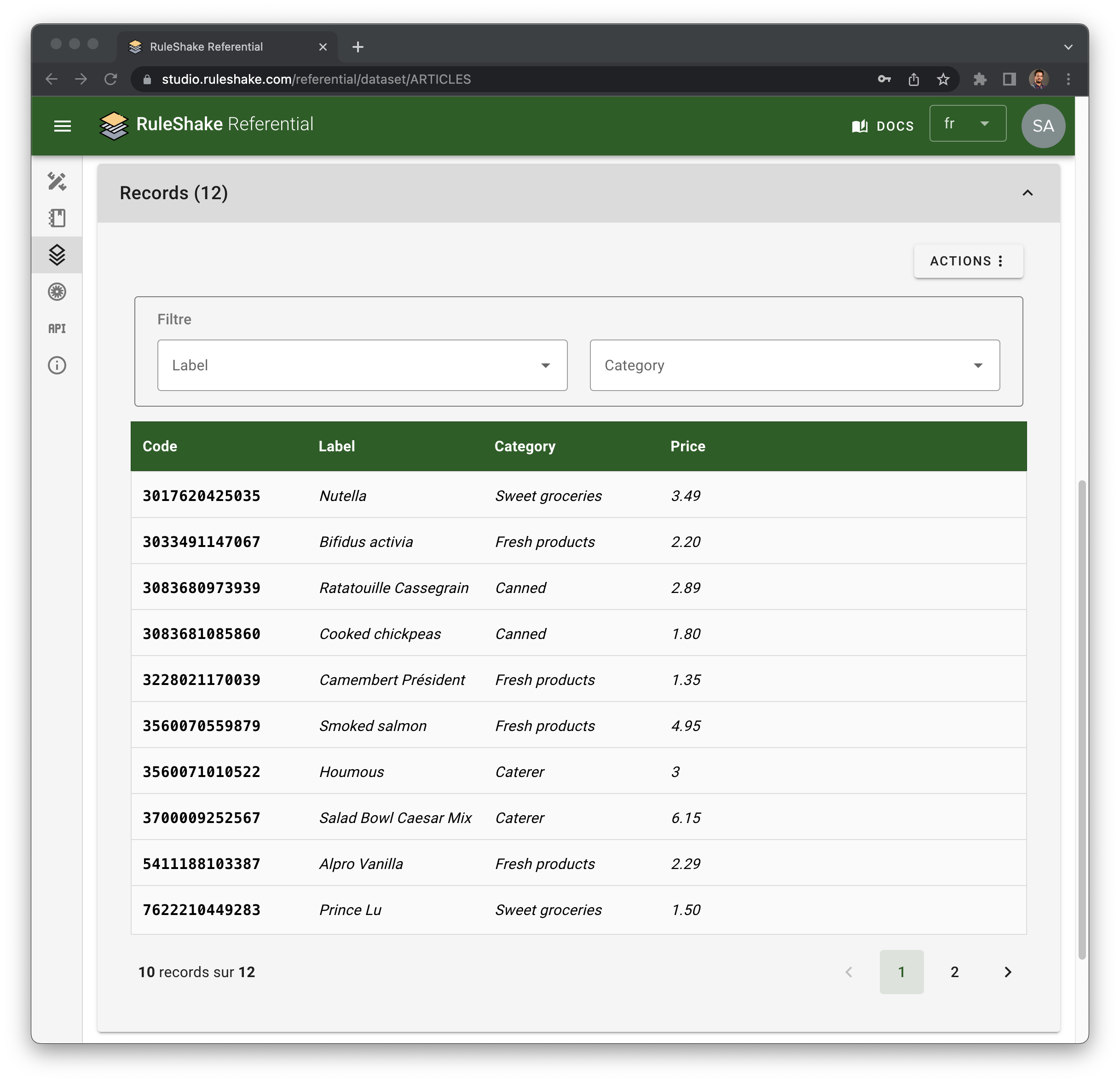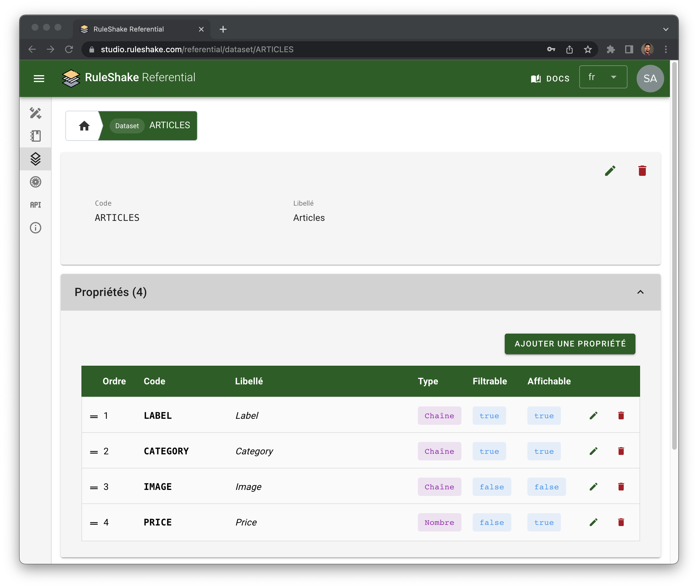 Commençons donc par définir le dataset référentiel d'articles dans RuleShake Referential :